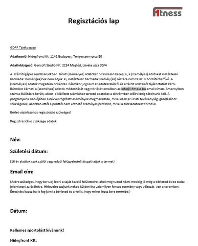 Regisztrációs lap kitöltése kötelező a bérlet vásárlásakor!